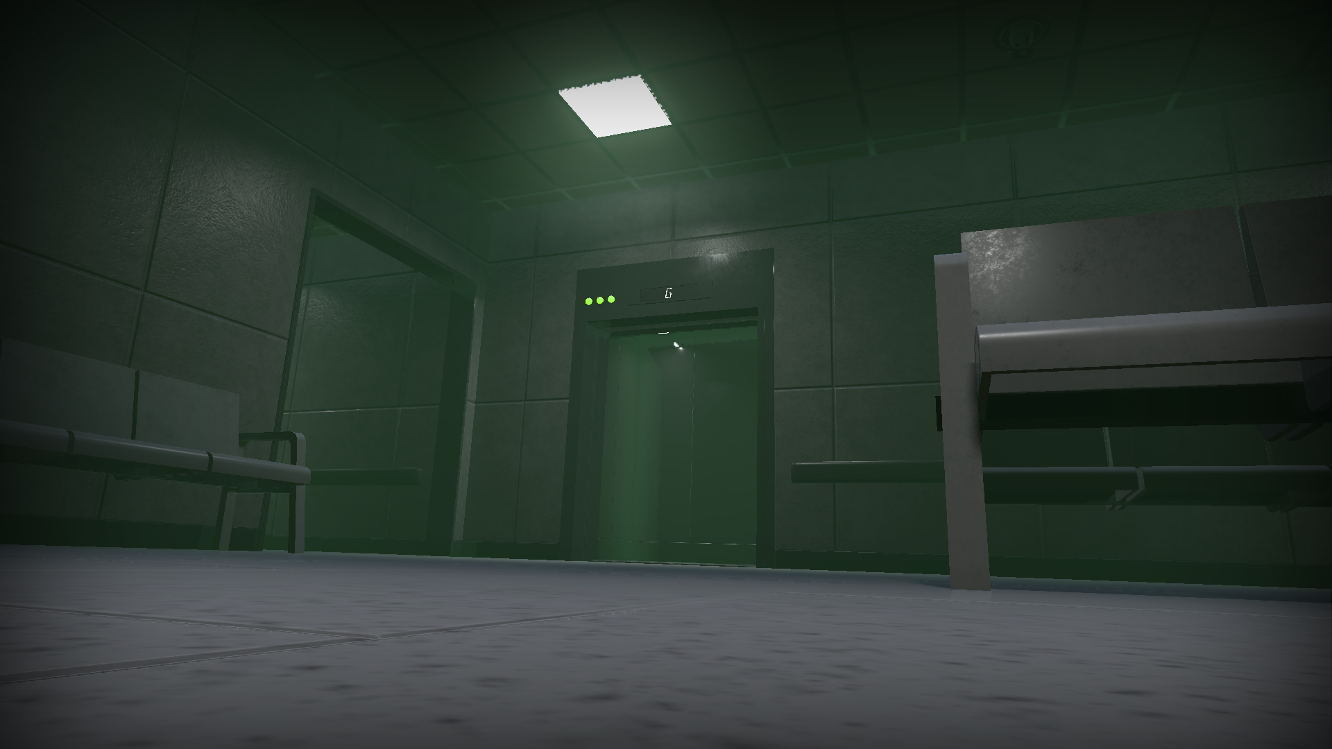 You start at the ground floor. As you try to find the way out of the empty halls of Nousens General Hospital, you will need to take the elevator which will take you to what looks like the same floor.